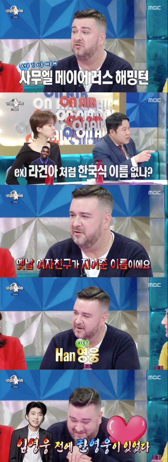 '라디오스타' 방송인 샘 해밍턴이 한국 이름이 임영웅과 같은 한영웅이라고 밝혔다.
