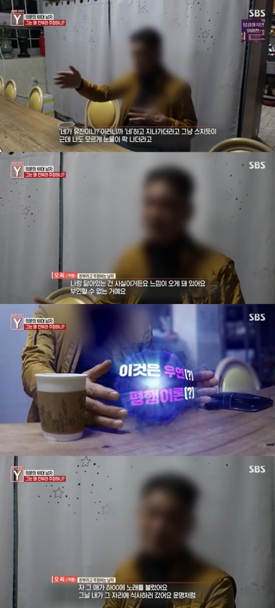 제작진이 오유진의 실존 친부 사진을 보여주자 오 씨는 "저하고 눈매도 그렇고 이분도 서로 비슷한 점이 있네"라며 끝까지 자신이 친부임을 주장했다. 오 씨는 "스물네댓 살 여자를 내가 노래방 다닐 때 만났다. 나중에 친모를 만나니 '신고한다'며 나를 피하더라"고 말했다.