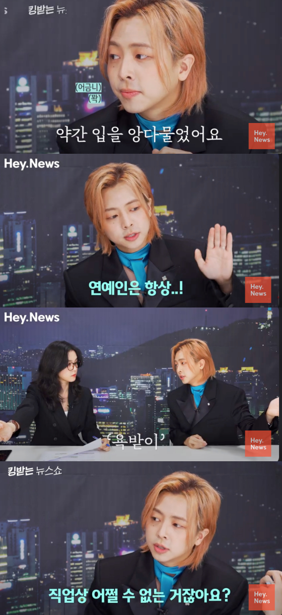 지올팍은 이에 "저는 따라하지 않는다"며 "연예인은 항상 욕받이다. 직업상 어쩔 수 없는 거 아니냐"고 덧붙였다. 강지영 아나운서가 이에 "저는 그 정도 연예인이 아니라 (모르겠다)"고 답하자 지올팍은 "저도 그렇다. 유명했으면 여기 안 나왔다"고 답해 웃음을 안겼다.