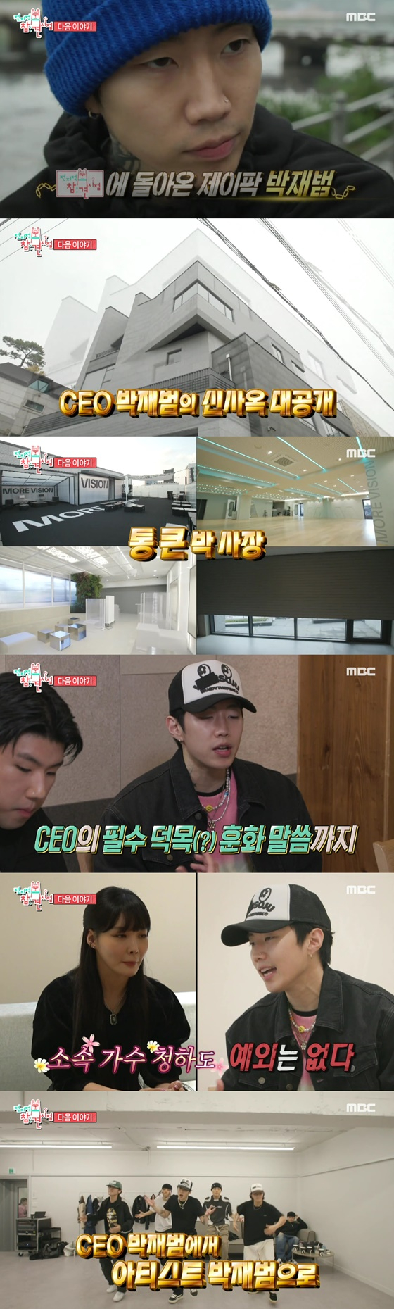 이어 박재범이 직원들에게 일장연설을 하는 모습이 포착돼 웃음을 안겼다. 직원들은 "훈화 말씀이 짧으면 괜찮은데 얘기가 점점 길어진다"고 토로했다.