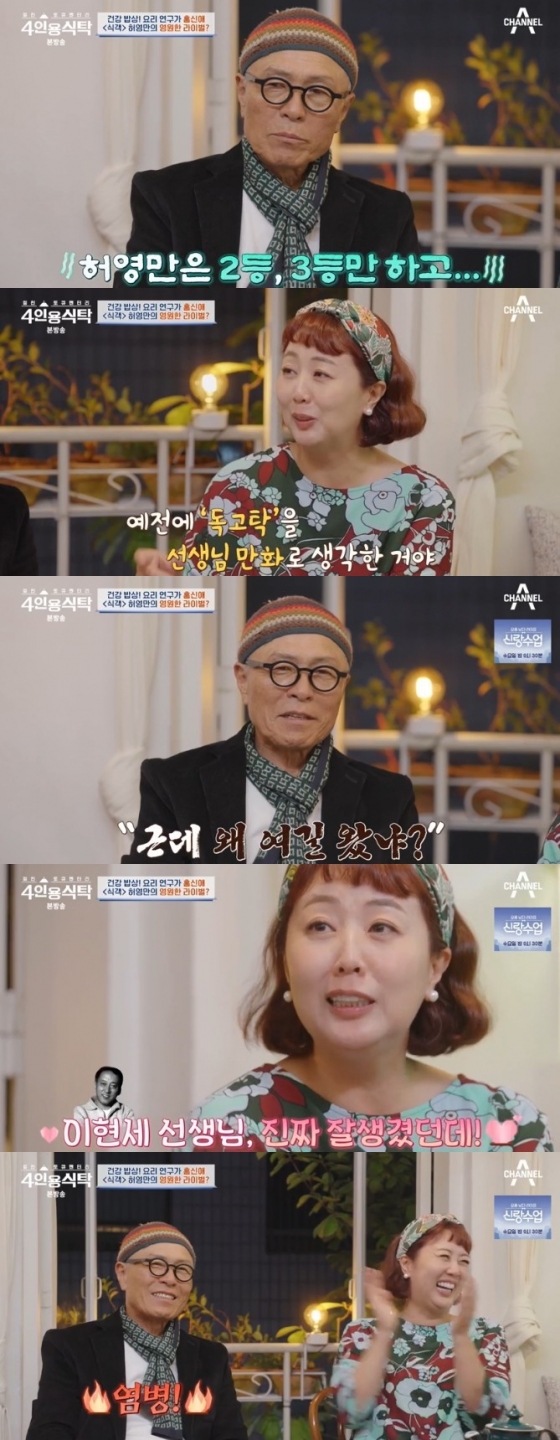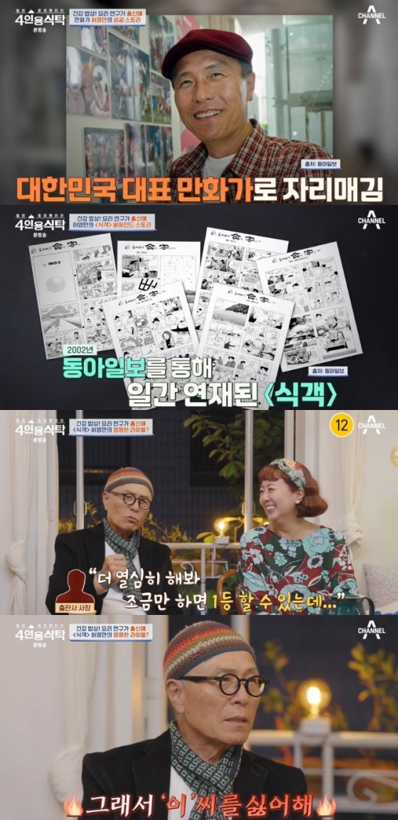 13일 방송된 채널A 예능프로그램 '절친 토큐멘터리 4인용식탁'에 요리 연구가 홍신애와 그의 11년 절친 허영만이 출연했다.