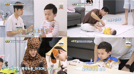 지난 14일 방송된 '슈돌' 501회는 '너는 나의 행복이야' 편으로 소유진과 최강창민의 내레이션으로 포문을 열었다. 이 가운데 은우는 두 돌을 맞아 행복이 가득한 생일 파티를 했고, 찐건나블리(나은+건후+진우)는 박준금과 만나 에너지 넘치는 하루를 보냈다.