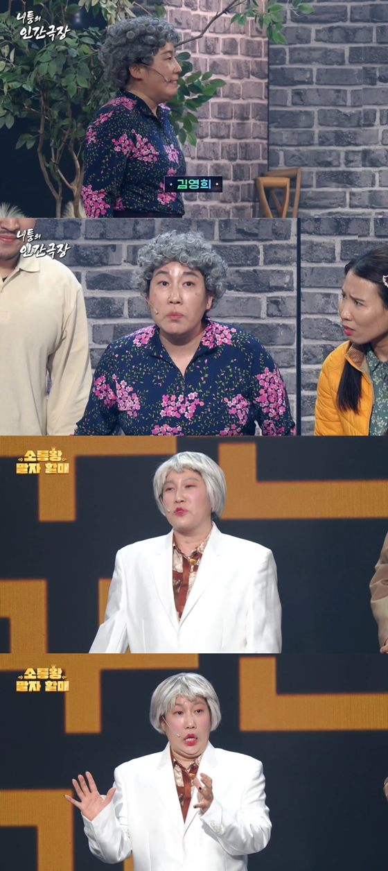 김영희가 과거 '개그콘서트'에서 여러 코너를 통해 다양한 캐릭터와 입담을 뽐내 웃음을 안겼던 모습을 회상했다.