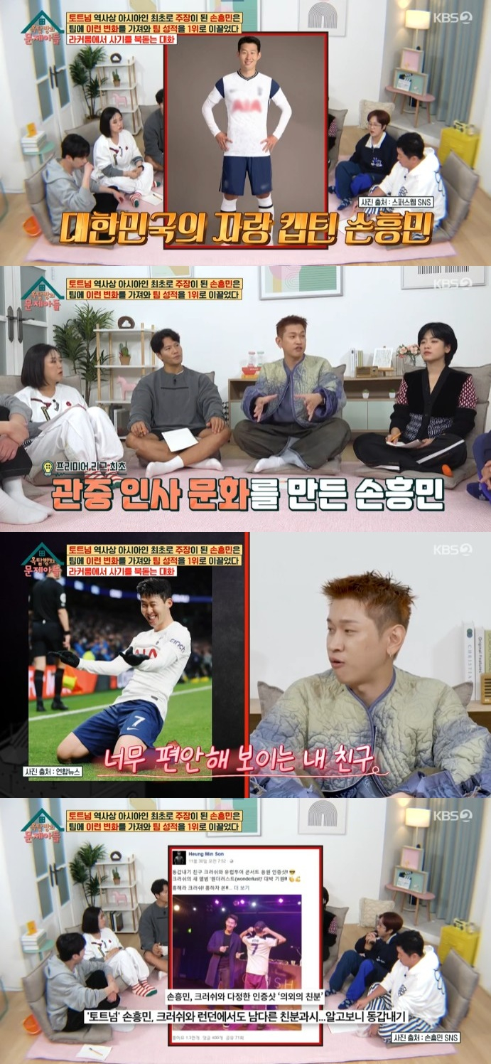 크러쉬는 "요즘 손흥민 선수 표정 보면 너무 편안해 보인다. 이게 또 팀의 성적과 직결되는 부분인 것 같다. 골도 랭킹 2위다. 10경기 무패다"라며 자랑스러워해 훈훈한 분위기를 자아냈다.