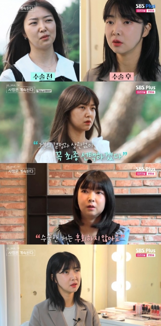 이어 그는 "저는 지금 얼굴이 (나중에) 어떻게 될지는 모르겠다. 제가 원하는 데로 나올지는 모르겠는데 어느 정도 각오하고 했다. 만에 하나 장애가 생길 수도 있고, 내가 운이 안 좋아서 진짜로 죽을 수도 있고. 어느 정도 생각을 하고 했기 때문에 부기가 빠진 얼굴이 예전보다 내 마음에 안 들지언정 수술한 거는 후회하지 않는다"고 설명했다.