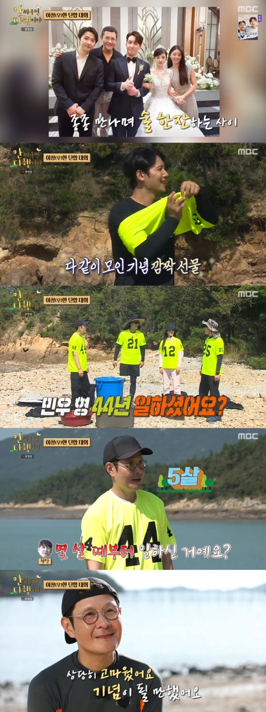 20일 방송된 MBC 예능 프로그램 '안 싸우면 다행이야'에서는 배우 이상우, 이민우, 심형탁 그리고 이가령이 무인도로 떠나 '이상(우)한 단합 대회'를 하는 모습이 그려졌다. 이날 가수 장민호와 코미디언 김민경이 빽토커로 함께 했다.