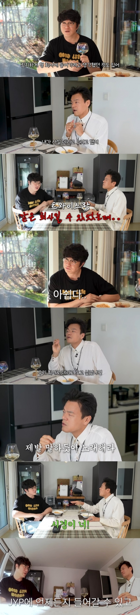 이야기 중 성시경은 박진영에게 "진지하게 형 회사에 들어가려고 생각한 적도 있어. 내가 형한테 물어봤었잖아요"라고 말했다.