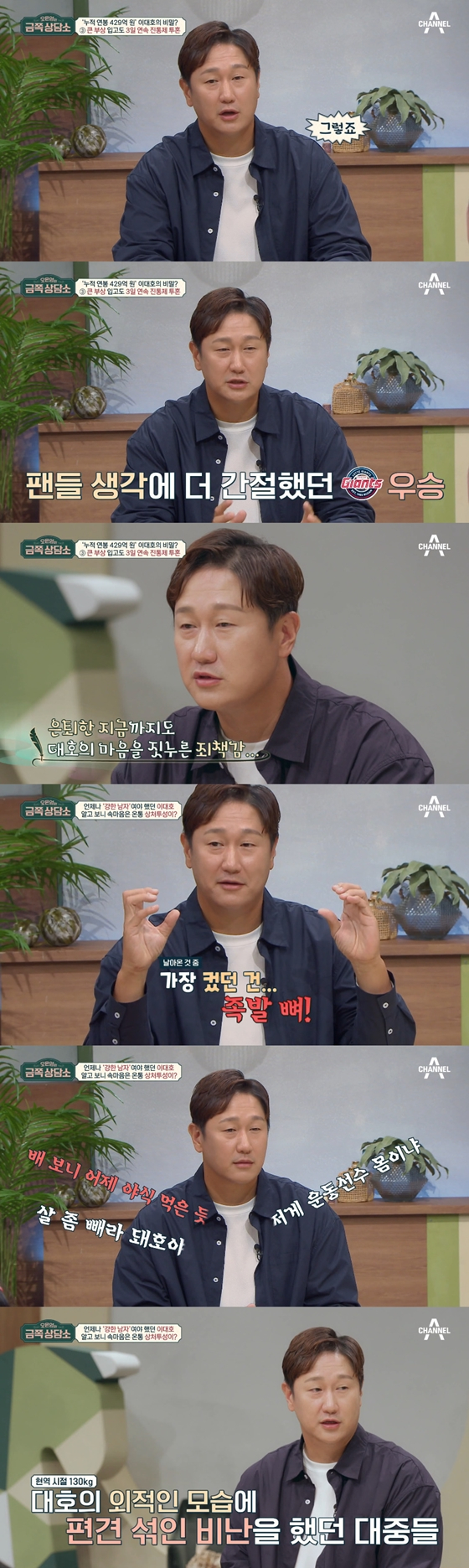 '금쪽 상담소' 이대호 "롯데 우승 간절..졌다고 족발뼈 날아와"[★밤TV]