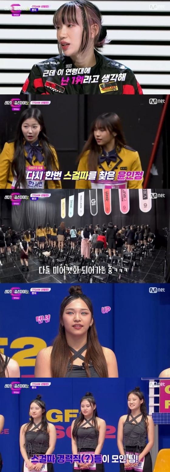 이날 방송에서 참가자들은 윤인정의 등장에 술렁였다. 이미 '스트릿댄스 걸스 파이터' 시즌 1에서 탄탄한 실력으로 강렬한 인상을 남겼던 윤인정은 여유로운 표정으로 등장해 남다른 투지와 열정을 내비쳤다.
