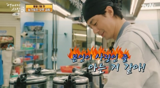 23일 방송된 tvN 예능 프로그램 '어쩌다 사장3' 5화에서는 미국 한인 마트 '아세아 마켓' 영업을 이어가는 '사장즈' 차태현, 조인성, '알바즈' 한효주, 임주환, 윤경호, 박병은의 모습이 공개됐다.