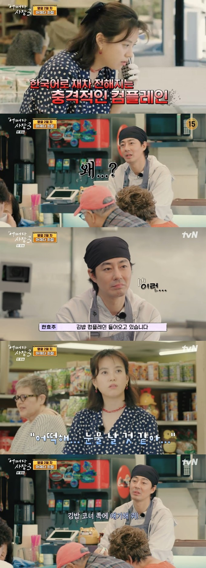 이날 방송에서 한효주는 카운터에서 장사를 이어가다 손님에 걸려온 전화 한통을 받았다. 그는 "밥이 잘 안됐다. 딱딱하다"라는 손님의 컴플레인에 놀라 "죄송합니다. 저희가 사과드릴게요"라며 연신 사과했다.