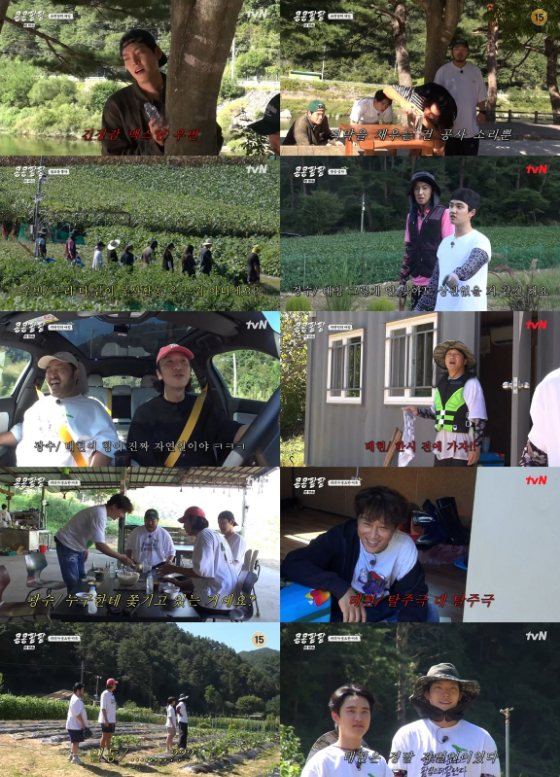 무엇보다 빠른 퇴근을 목표로 추진력을 발휘한 차태현 덕분에 초보 농사꾼들은 지금까지 보지 못했던 역대급 진행 속도를 냈다. 이광수, 김우빈, 김기방은 이른 시간부터 가지 지주대를 설치하고 도경수는 밭에서 수확한 가지로 식사를 준비했다.