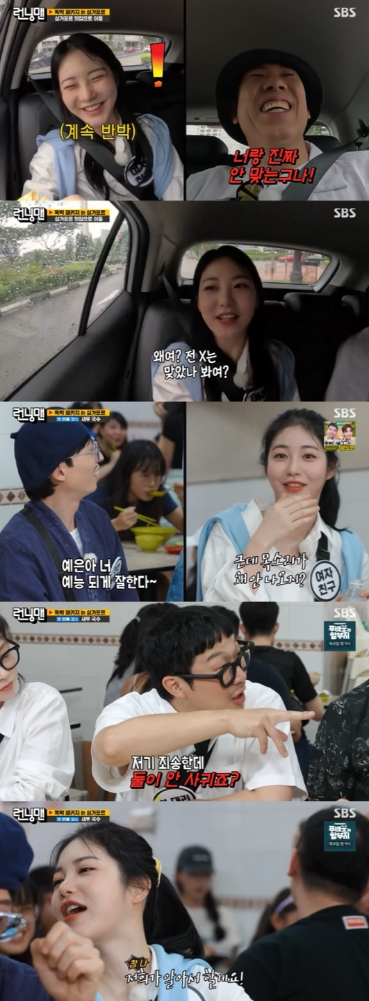 신예은은 하차한 전소민을 간접 언급하며 "전 엑스(X)랑은 잘 맞았나 보다"라고 했다. 이에 양세찬은 "그 친구도 맞춰가려고 했다. 그 친구도 너처럼 한 마디도 안 지려고 한다"라며 전소민과 신예은의 공통점을 찾았다.