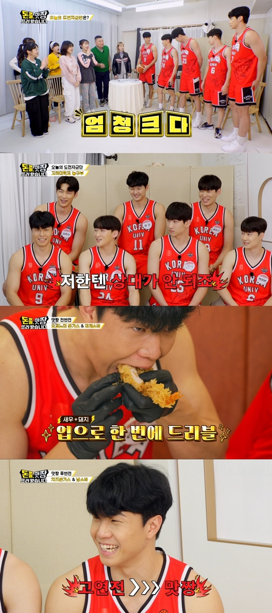 28일 AXN과 IHQ에서 방송되는 '돈쭐 맛짱뜨러 왔습니다'(이하 '돈쭐')에서는 고려대학교 농구부와 돈쭐군단의 먹방 대결이 펼쳐진다.