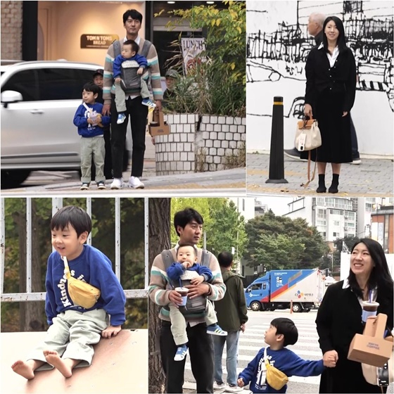 최근 진행된 녹화에서 이필모는 두 아들인 5살 담호, 생후 14개월 도호와 함께 아내 서수연의 퇴근길 마중에 나섰다. 이필모는 한 손에는 담호의 손을 잡고 아기띠로 도호를 품에 안은 채 든든한 삼부자의 위엄을 선보였다. 특히 삼부자가 서수연을 마중 나간 퇴근길이 이필모와 서수연이 5년 전 소개팅으로 처음 만난 추억의 횡단보도라고 해 눈길을 끌었다.