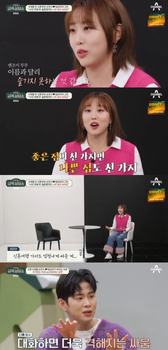 임라라는 '손민수 타임'에 대해 "답답해 미치겠다. 민수는 어쩔 수 없는 거라고 한다. 제가 되게 보고 싶었던 공연이 있었는데 갑자기 민수가 '그 공연 안 가면 안돼?'라고 하더라. 공연 후 호텔을 가기로 해서 '그럼 호텔도 가기 싫겠네. 그럼 나 혼자 갈까?'라고 물어보니까 아무 말도 안 하더라. 그래서 또 저 혼자 갔다. 서럽고 힘들 때도 있다"고 털어놓았다.