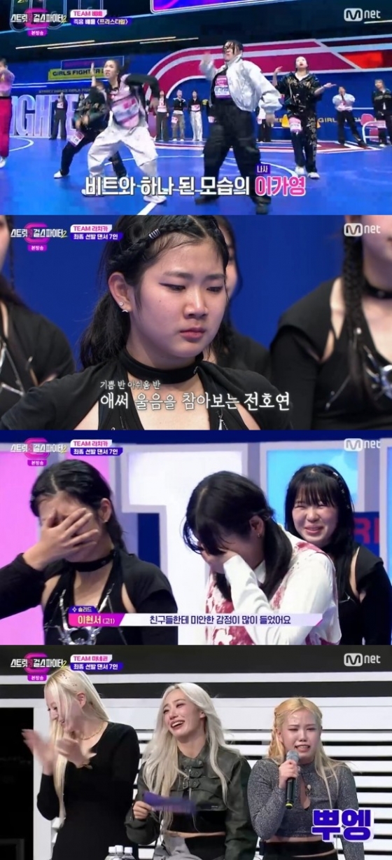 최종인원으로 선발된 참가자들은 함께 선발되지 못한 소속 팀원들에 미안해하며 눈물을 쏟아내 안타까움을 자아냈다.