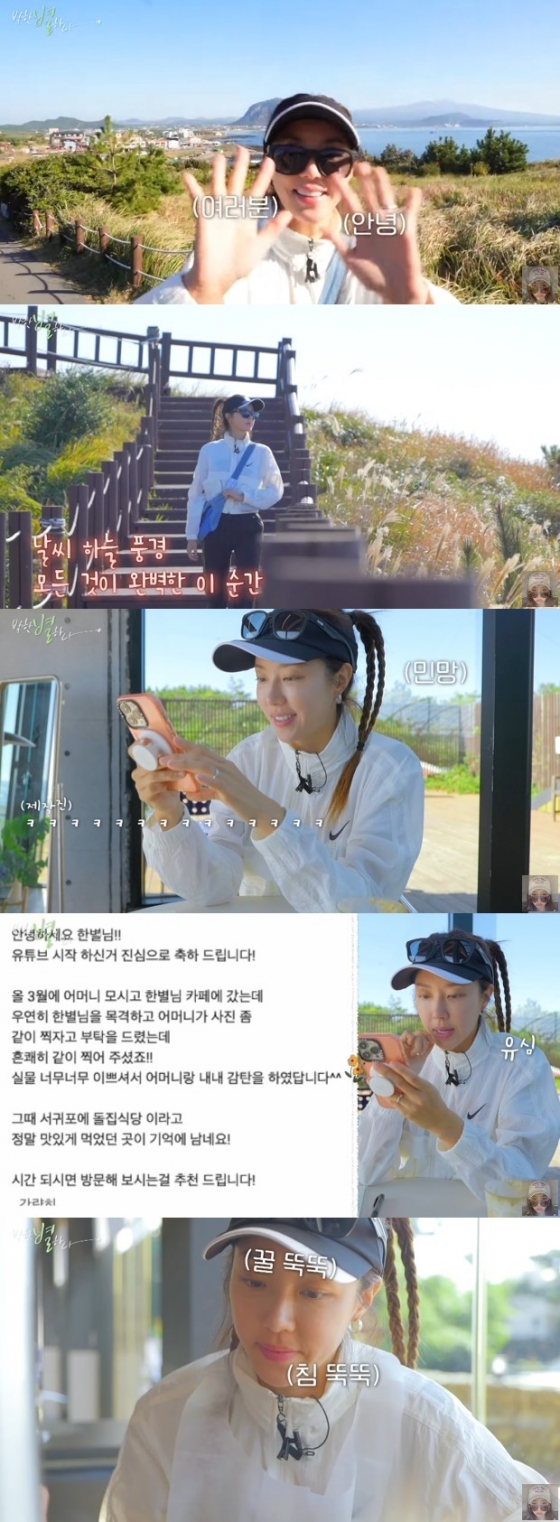 공개된 영상에서 박한별은 제주 송악산 둘레길을 걷다 "제가 정말 많이 오는 곳이다. 혼자도 오고, 가족들, 친구들이랑도 온다. 몇 십번을 왔는데도 올 때마다 감탄한다"며 눈앞에 펼쳐진 절경에 감동했다. 이어 박한별은 "유튜브를 시작하고 나서 사람들한테 많이 물어보고 있다. 대부분 제주도에서의 일상, 제주도에서의 삶을 되게 보고 싶어 하더라. '대신 먹어드립니다'도 거기서 출발한 거다"고 설명했다.