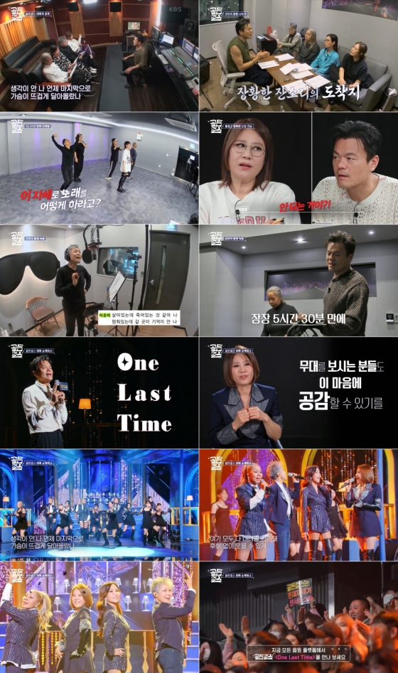 '골든걸스' 데뷔곡 'One Last Time'이 베일을 벗자, 박진영은 "누나들을 생각하며 만든 곡"이라며 자신이 가이드 한 녹음본을 공개했다. 이은미는 뜨거운 포옹과 함께 "가사가 좋은 것 같다"라고 만족함을 드러내 박진영의 미소를 불러왔다. 신효범은 "우리가 할 수 있는 이야기"라며 가사에 공감했고, 박미경은 "빌보드 1위 되겠다"며 자신감을 보였다.