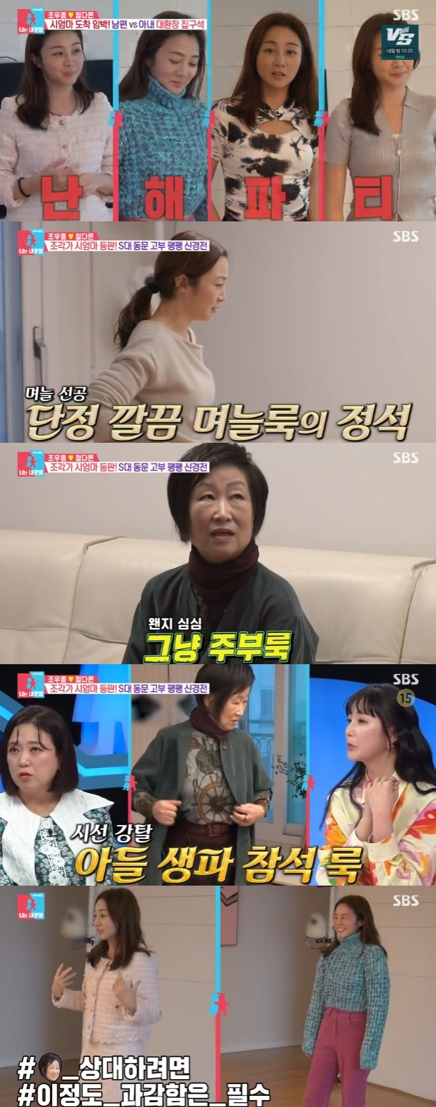 이날 정다은은 조우종의 생일 파티를 위해 집에 방문한 시어머니를 신경 써 단정한 며느리룩을 선보였다. 반면 조우종의 어머니는 버건디 색과 카키색을 믹스 매치한 과감한 패션으로 등장해 눈길을 끌었다.