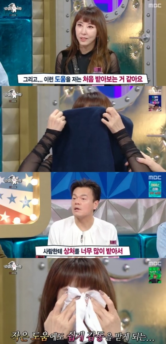 이어 그는 "근데 답장을 보고 울었다. 너무 감동을 받았다. 그리고 이런 도움을 살면서 처음 받아본 것 같다"며 울먹였다. 그러면서 "효리에게는 '언니 존재 자체가 우리한테 큰 힘이야'라는 문자를 받았다"며 이야기를 하던 중 눈물을 쏟아냈다.