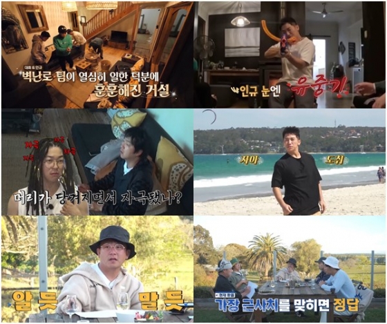 이날 방송에서 호주 두 번째 숙소에서 푸짐하게 저녁을 먹은 멤버들은 방 4개를 걸고 '독박 게임'에 들어간다. 장난감 총으로 사격 실력을 겨뤄, 꼴찌가 거실에서 벽난로를 피우며 불침번을 서기로 한 것.