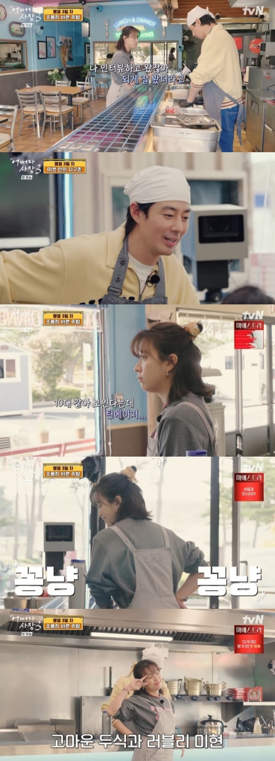 7일 방송된 tvN 예능 프로그램 '어쩌다 사장3' 7화에서는 미국 한인 마트 '아세아 마켓' 영업을 이어가는 '사장즈' 차태현, 조인성, '알바즈' 한효주, 임주환, 박경림의 모습이 공개됐다.