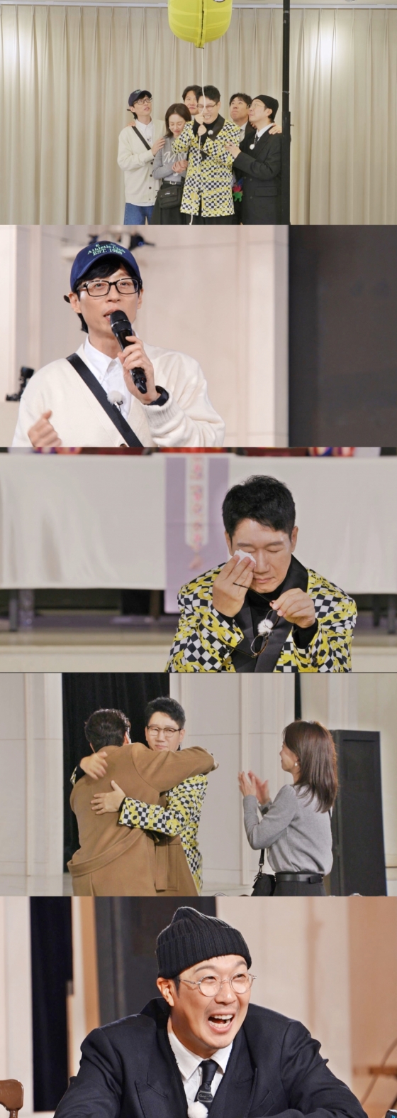 방송인 유재석이 지석진의 환갑 여행서 눈물을 보인다.