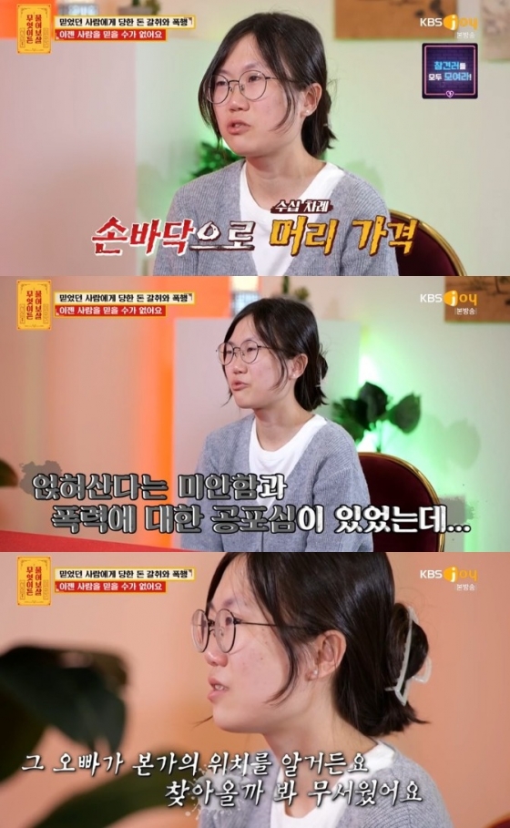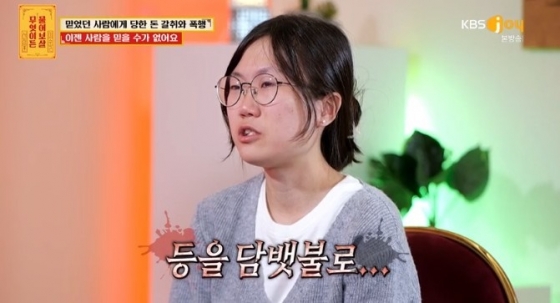이어 그는 '친오빠한테 말했냐'는 질문에 "얹혀산다는 미안함도 있었고 처음엔 말하지 말라고 협박을 해서 말을 못했다. 근데 두 번째 폭행 때 등을 담뱃불로 지졌다. 그제야 오빠에게 흉터를 보여주며 말을 했다"며 충격적인 이야기를 이어갔다