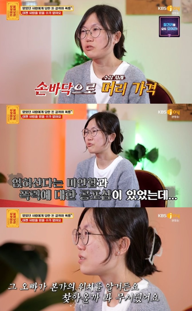 이에 서장훈이 "처음 폭행이 일어났을 때 왜 바로 알리지 않았냐"고 묻자. 의뢰인은 "이야기를 하면 제 부모님과 친오빠의 손가락, 발가락을 부러트린다고 했다"고 밝혔다.