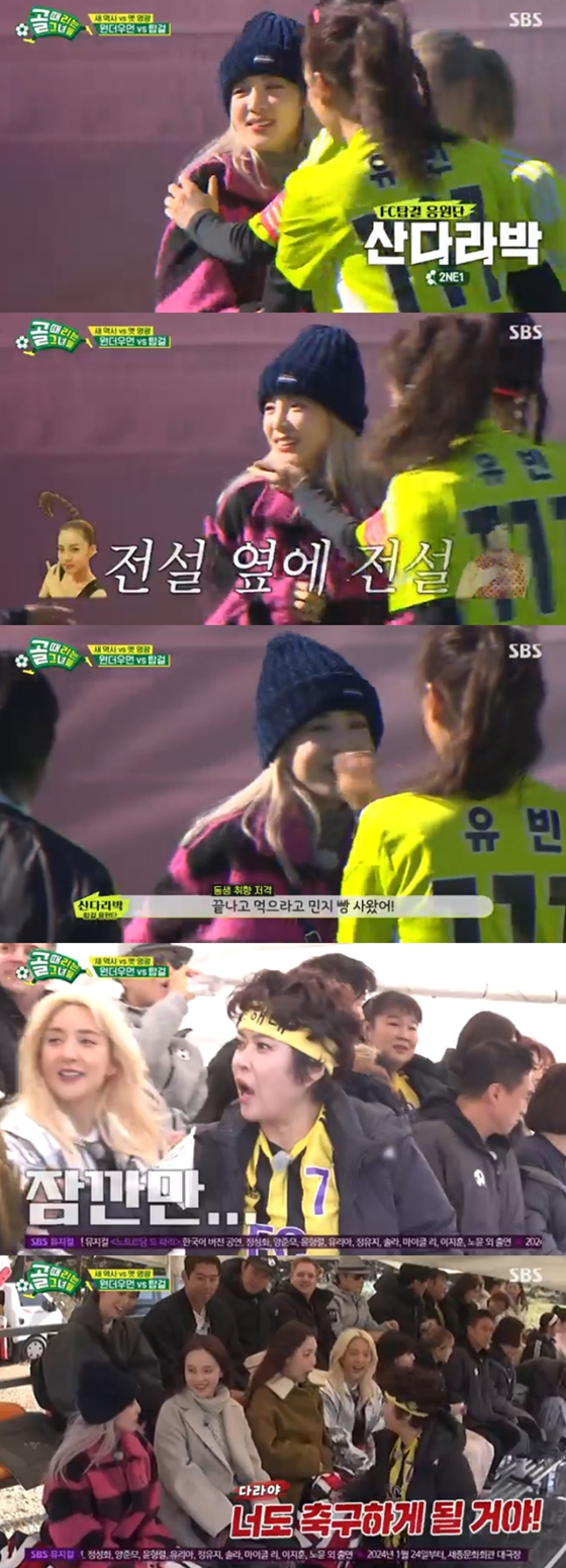 산다라박은 다른 팀 선수들이 모여 있는 응원석으로 향했다. 산다라박을 본 조혜련은 "하게 될 거야"라는 말로 '골때녀' 출연을 권했다. 이에 산다라박은 "저는 몸 쓰는 거 잘 못해서"라고 거절 의사를 표해 웃음을 자아냈다.