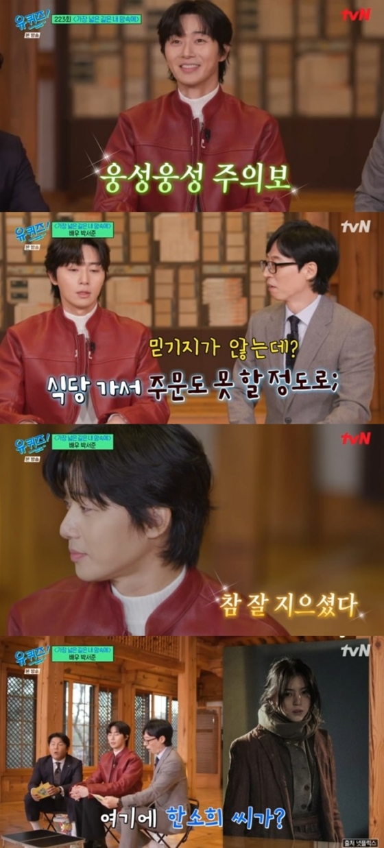 이어 그는 "'경성크리처'를 2년 정도 촬영했다"며 "한소희가 '유퀴즈' 출연한다고 하니까 되게 부러워했다. 경력이 더 쌓이면 나갈 수 있는 지 물어보더라"고 이야기를 전했다.