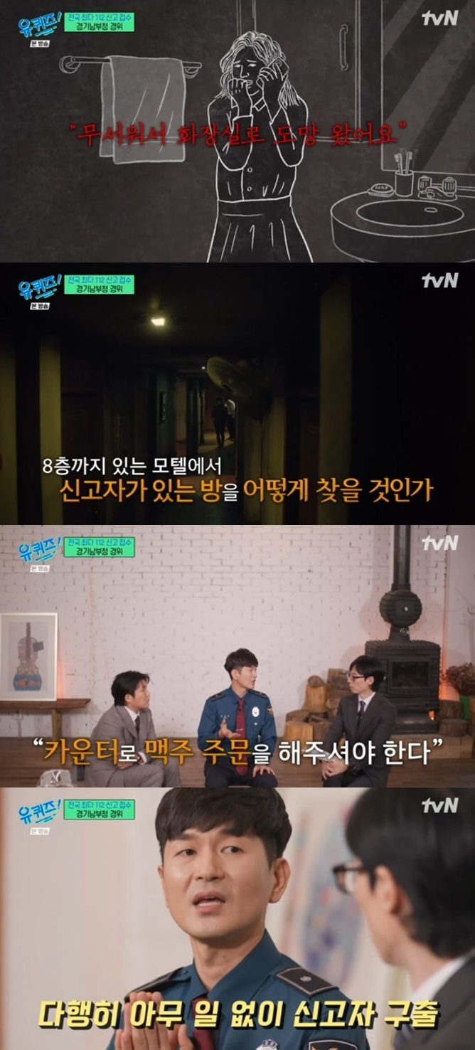 그러면서 "그렇게 현직 경찰관들이 모텔을 찾았는데 신고자가 있는 방을 찾기 어려웠다. 그래서 여성분한테 그 남자에게 '맥주를 마시자'고 제안해서 카운터로 맥주를 주문해달라고 했다. 여성분이 용기를 내서 남자에게 제안을 했고, 이후 경찰관들이 방을 찾아내 아무 일없이 여성을 구출할 수 있었다"고 전해 감탄을 자아냈다.