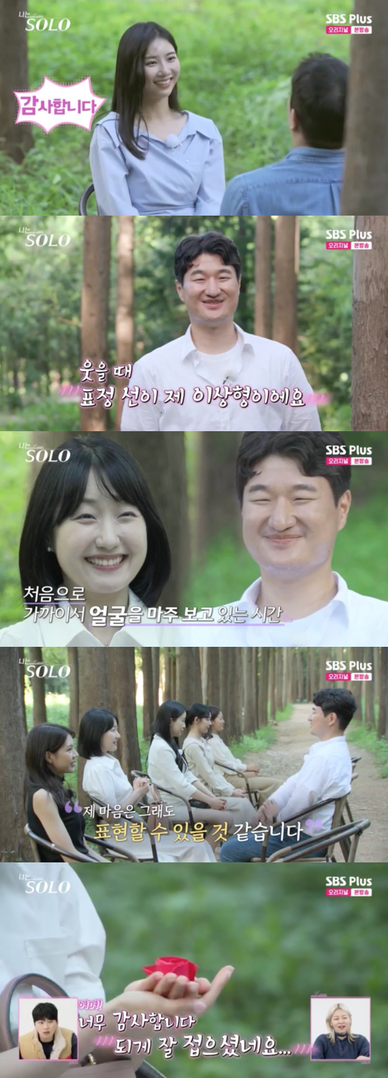 '나는 솔로' 18기 광수가 첫인상 선택에서 영자에게 종이 꽃을 건넸다.