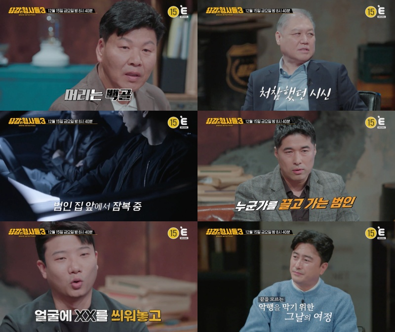 오는 15일 방송되는 티캐스트 E채널 '용감한 형사들3' 17회에는 정석관, 임성묵, 정종석, 송유중 형사가 출연해 직접 발로 뛴 수사 일지를 공개한다.
