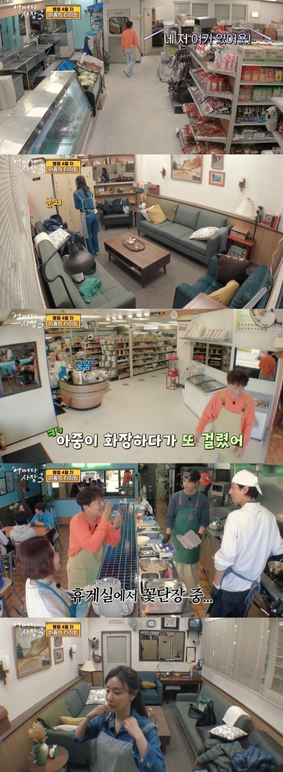 14일 방송된 tvN 예능 프로그램 '어쩌다 사장3' 8화에서는 미국 한인 마트 '아세아 마켓' 영업을 이어가는 '사장즈' 차태현, 조인성, '알바즈' 박경림, 김아중, 임주환의 모습이 공개됐다.