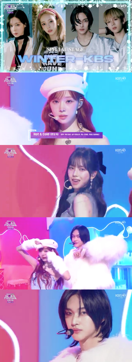 에스파 카리나, 윈터와 라이즈 쇼타로, 원빈은 이날 이니셜을 활용해 'Winter-KBS'라는 이름으로 등장했다. 네 사람은 '겨울에는 KBS'라는 의미를 담아 특별 컬래버레이션 무대를 선보였다.
