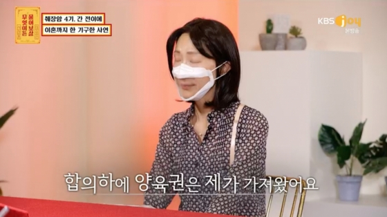 사연자는 "양육권은 남편이 내게 넘겼다"라며 "힘든 일이 동시에 왔다. 투병 사실은 주위에 알렸는데 이혼은 도저히 말을 할수 없었다"라고 털어놓았다.