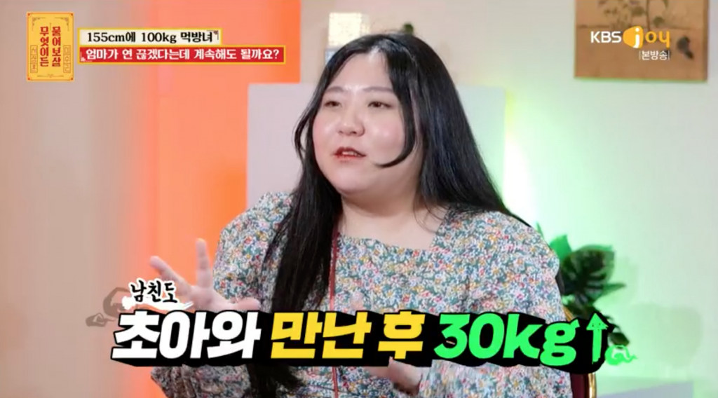 사연녀는 "최고 말랐을 때 가 49kg였다"라며 "남자친구도 있다. 나를 만나서 30kg가 쪘다"라고 말하기도 했다. 서장훈은 "너 그러다 간다. 짧고 굵게 살다 가고 싶어?"라며 독설을 날렸다.