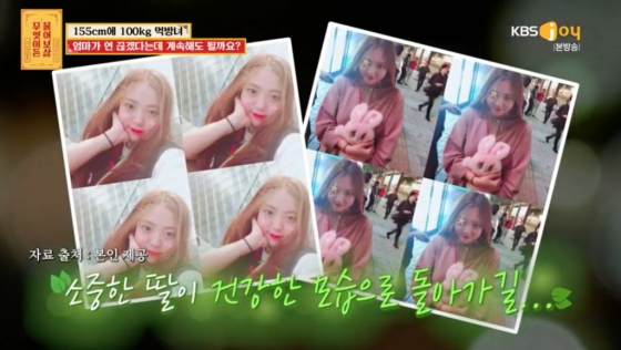 건강검진 결과 고혈압과 고콜레스테롤 그리고 간 수치까지 높게 나왔다는 사연자의 제일 날씬했을 때의 모습이 공개되자 이수근은 "사랑하는 딸의 건강이 망가져 가는 모습을 어떤 부모가 이해하겠어"라고 안타까워하며 먹방을 그만두라는 부모님의 마음에 공감했다.