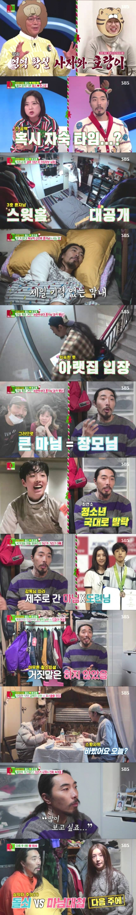이날 MC 김구라는 "크리스마스 하면 가족들과 함께 지내는데 요즘 상황상 혼자 지내는 분들이 있다"라면서 "외롭지 않게 보내시라고 '혼자남 특집'을 준비했다"며 오프닝을 열었다. 스튜디오에는 각집살이계의 대부, '동상이몽'의 2호 혼자남 이봉원이 함께했다. 지난 6월 출연해 '각집살이' 일상을 공개한 이봉원은 방송 후 아내 박미선의 반응을 묻는 질문에 "봤는지 안 봤는지 잘 모르겠다"라며 31년 차 부부의 현실적인 면모를 보여줬다. 이봉원은 "사자와 호랑이라 생각하면 된다. 서로 터치를 안 하지 않냐"며 너스레를 떨어 웃음을 자아냈다.