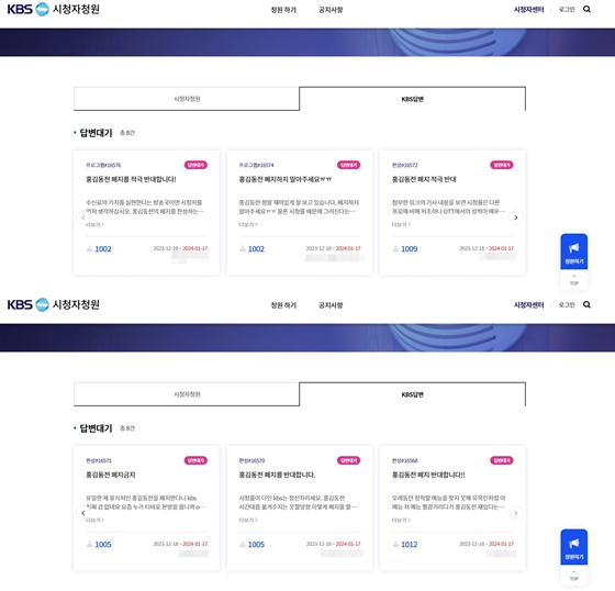 KBS는 시청자 청원 게시판에 게시된 청원 중 30일 동안 1000명이 동의를 하면, 해당 청원에 대한 답변을 해야 한다.