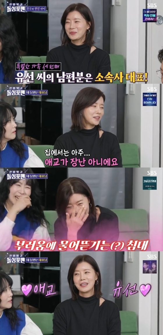 또한 이날 방송에선 배우 유선이 사업가인 남편을 거론해 눈길을 끌었다.