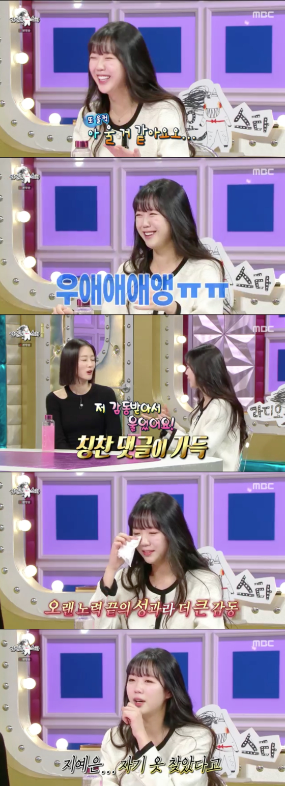지예은은 이날 SNL을 언급하며 눈물을 보였다. 지예은은 "(지난 시즌에서) 아영이만 화제가 돼서 이번 시즌에는 내려놓고 하자 싶었다. 근데 초롱이 여친 영상에 칭찬 댓글이 너무 많아서 감동받아서 울었다"며 울컥해 눈물 흘렸다.