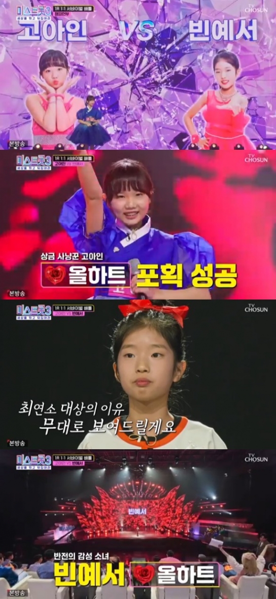 트로트 신동이라 불리는 고아인과 빈예서가 올하트를 받아 다음 라운드에 진출했다.
