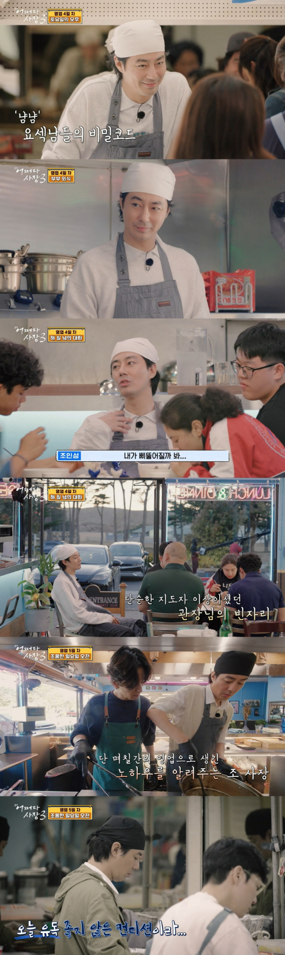 '알바즈'를 아우르는 참 리더의 모습뿐만 아니라 낯선 손님들과 격 없이 소통하고 공감하는 조인성의 살가움도 꽃을 피웠다. 조인성은 4일 차 저녁 영업에 찾아온 마리나 시티의 태권도장 관장과 사범들을 따뜻하게 맞이한 것은 물론 자신의 개인사를 털어놓으며 공감대를 형성했다.