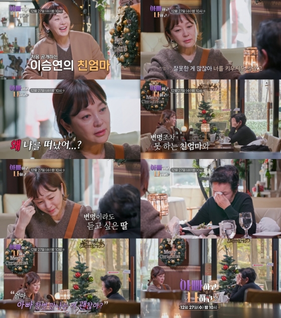 '아빠하고 나하고'에서 배우 이승연이 50년 전 떠난 친모와 상봉해 눈물을 흘린다.