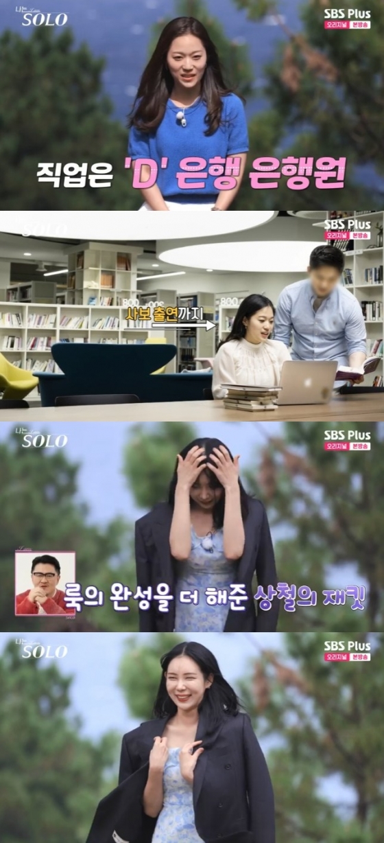 이날 방송에서 첫 번째로 자기소개에 나선 영자는 서른 살 은행원이라고 밝혔다. 이어 그는 "영업점 창구에서 5년간 근무 후 현재는 경영 기획 본부 소속 글로벌 사업을 담당하고 있다. 돈은 여행을 하는데 쓴다. 또 부동산에 관심이 많다"고 설명했다.