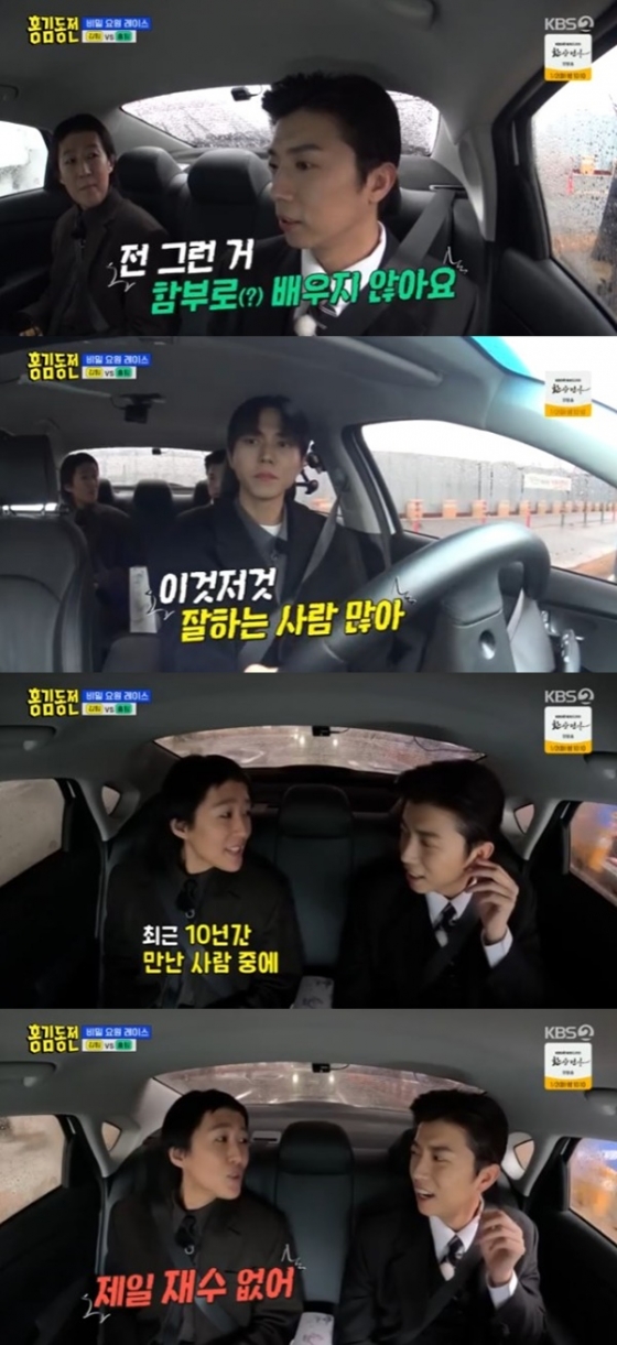 28일 방송된 KBS 2TV 예능 프로그램 '홍김동전'에서는 홍진경, 김숙, 조세호, 주우재, 장우영이 '비밀 요원 레이스' 미션을 수행하는 모습이 담겼다.
