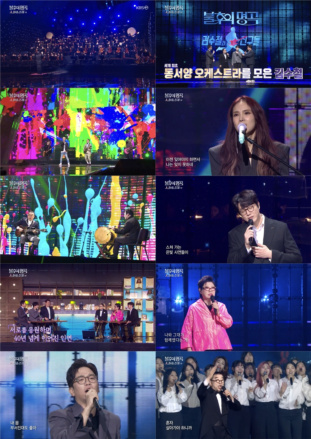 '불후의 명곡'에서 가수 김수철이 세계 최초 동서양 100인조 오케스트라로 대화합 무대를 만들어 시청자들을 사로잡았다.